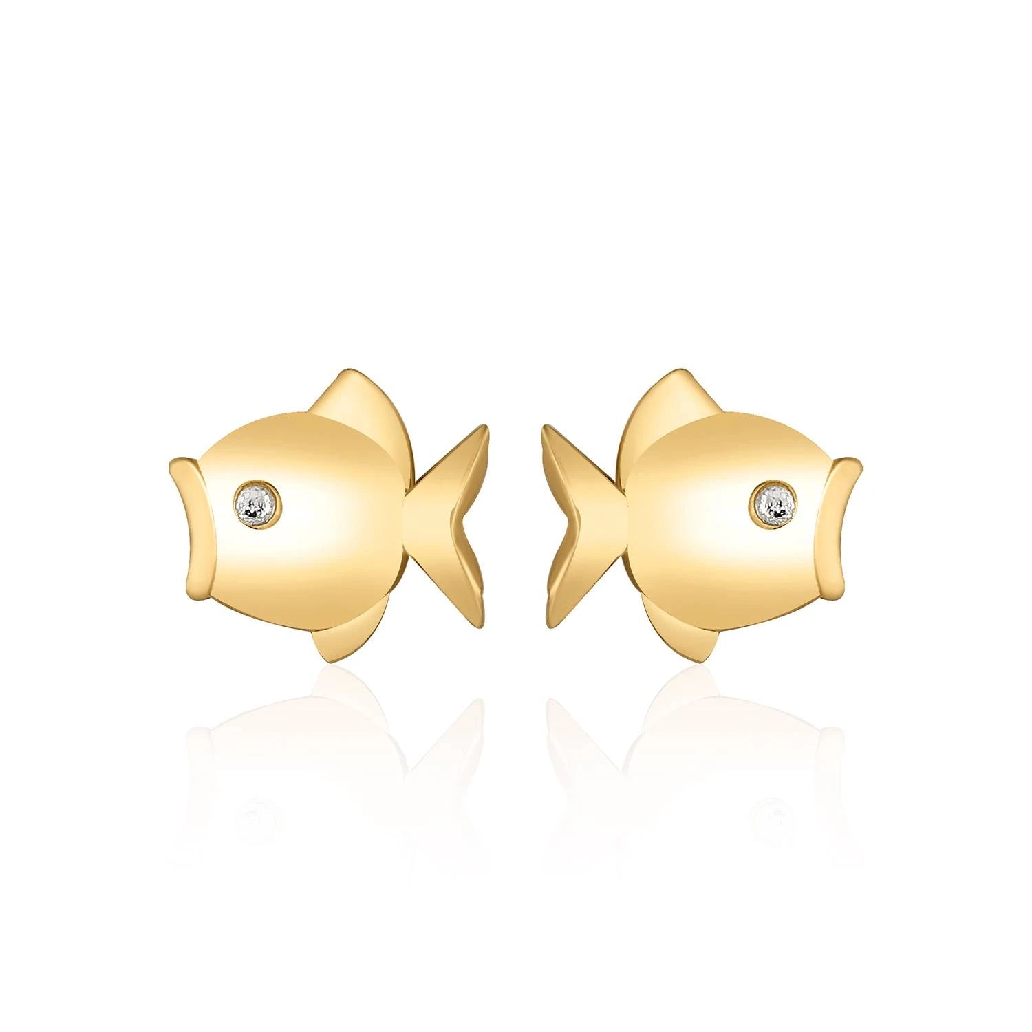 Diese elegant gestalteten Fischfiguren-Ohrringe aus 14 Karat Gelbgold funkeln, inspiriert von den Tiefen des Meeres. Die Fischfigur symbolisiert Freiheit, den Fluss des Lebens und Innovation. Das mit Steinen besetzte Design verleiht dem Ohrring eine funkelnde Eleganz. Der warme Goldton verbindet sich mit dem Glitzern der Steine zu einem auffälligen Effekt. Diese vielseitigen Ohrringe ergänzen Ihren Stil als elegantes und bedeutungsvolles Detail – sowohl im Alltag als auch in besonderen Momenten. Sie spiegeln die Energie und Freiheit des Meeres wider und werden Sie mit ihrem faszinierenden Look begeistern.